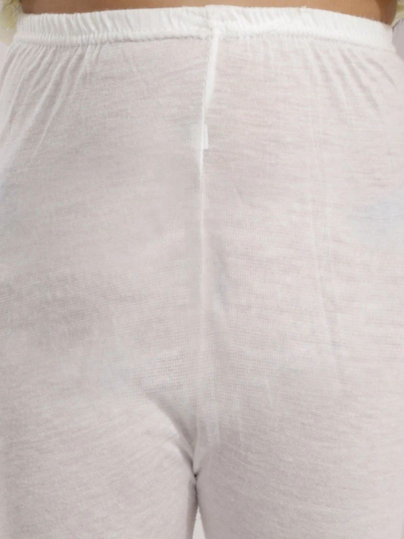 Beautifully handcrafted Kurta And Churidar Set for Girls. It made with Pure cotton fabric, has three quater sleeves, round neck, button closure, is knee length and has straight hem. The kurta has gathered waist and has all over lukhnowi chikankari embroidery. Comes with white hosiery leggings on elasticated waistband.